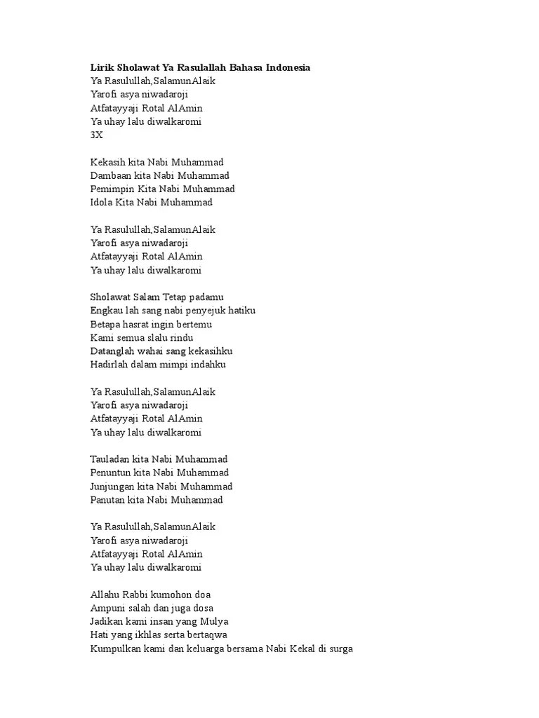 Ya rabbana lakal hamdu kama yanbaghi lijalali wajhika wa 'azhimi sulthanik allahumma shalli wasallim 'ala muhammadin wa 'ala alihi washahbihi ajma'in. Lagu sholawat ya ali yabna abi thalib menceritakan ali bin abu thalib … Sholawat mughrom yang sempat dipopulerkan oleh ai …
